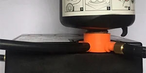 连接阀与轮胎气嘴顺时针方向拧紧,并倒置产品